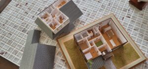 事務所の打合せ室に置いてあります、新築の家の模型です。 (一部の家だけにはなりますが) 屋根を取り外して1階2階の部屋まで見る事ができます。 新しいお家の完成が楽しみになりそうですね