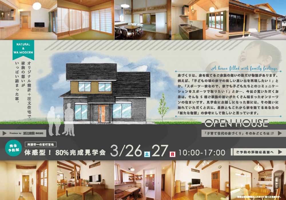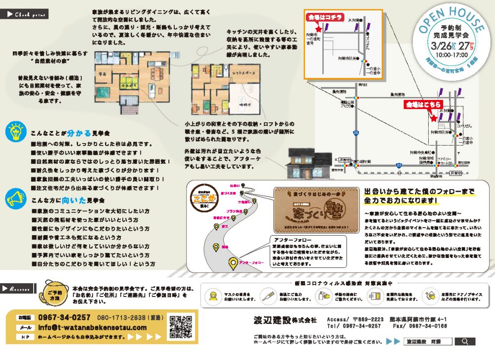 3月26日(土)27日(日)に阿蘇市一の宮町宮地にて予約制の80%完成見学会を開催いたします。